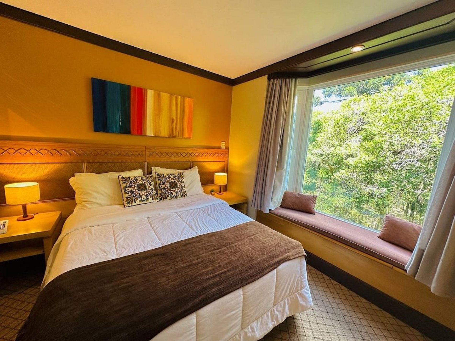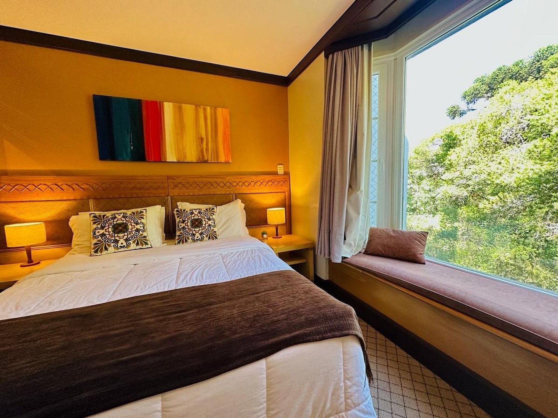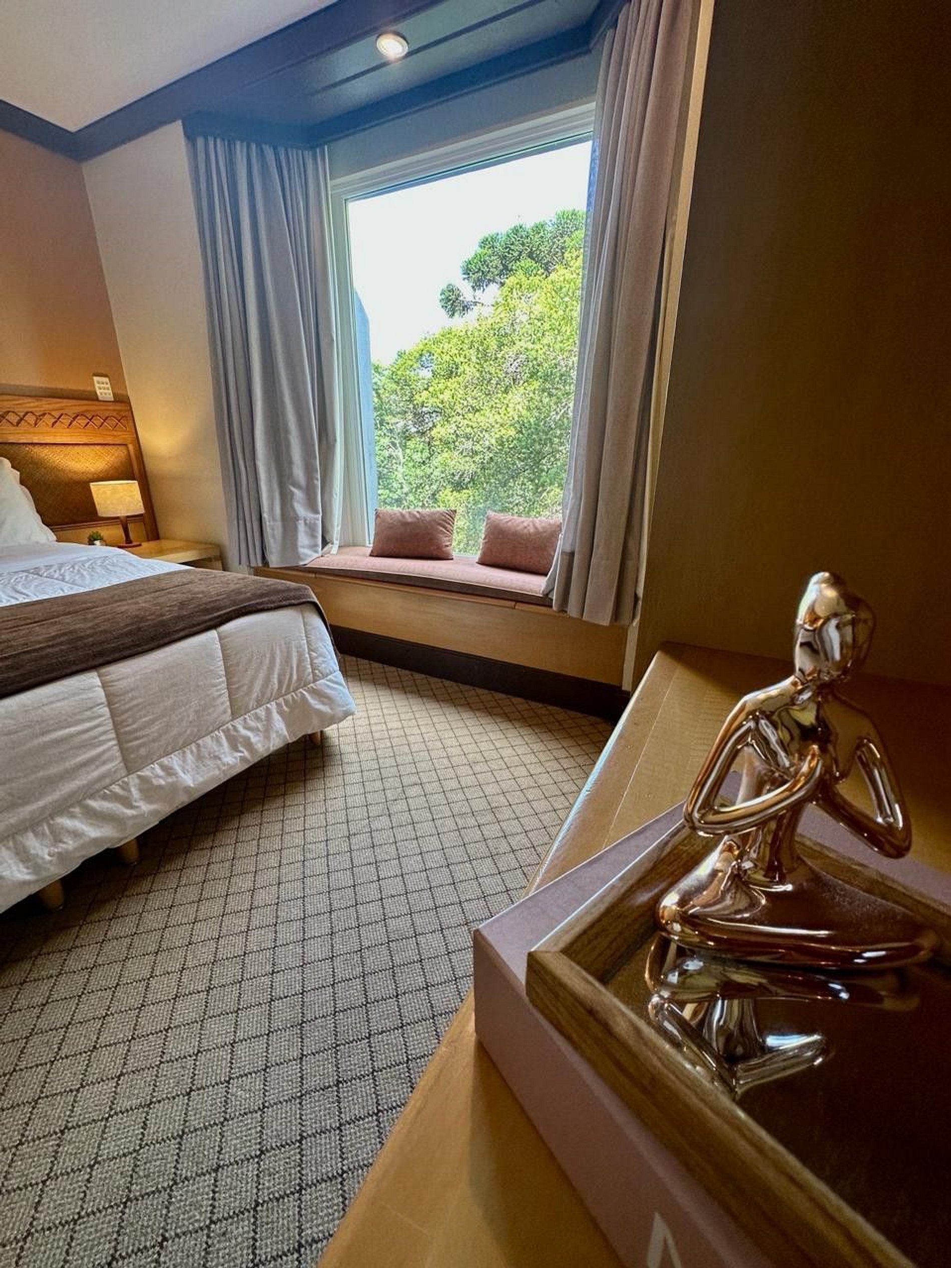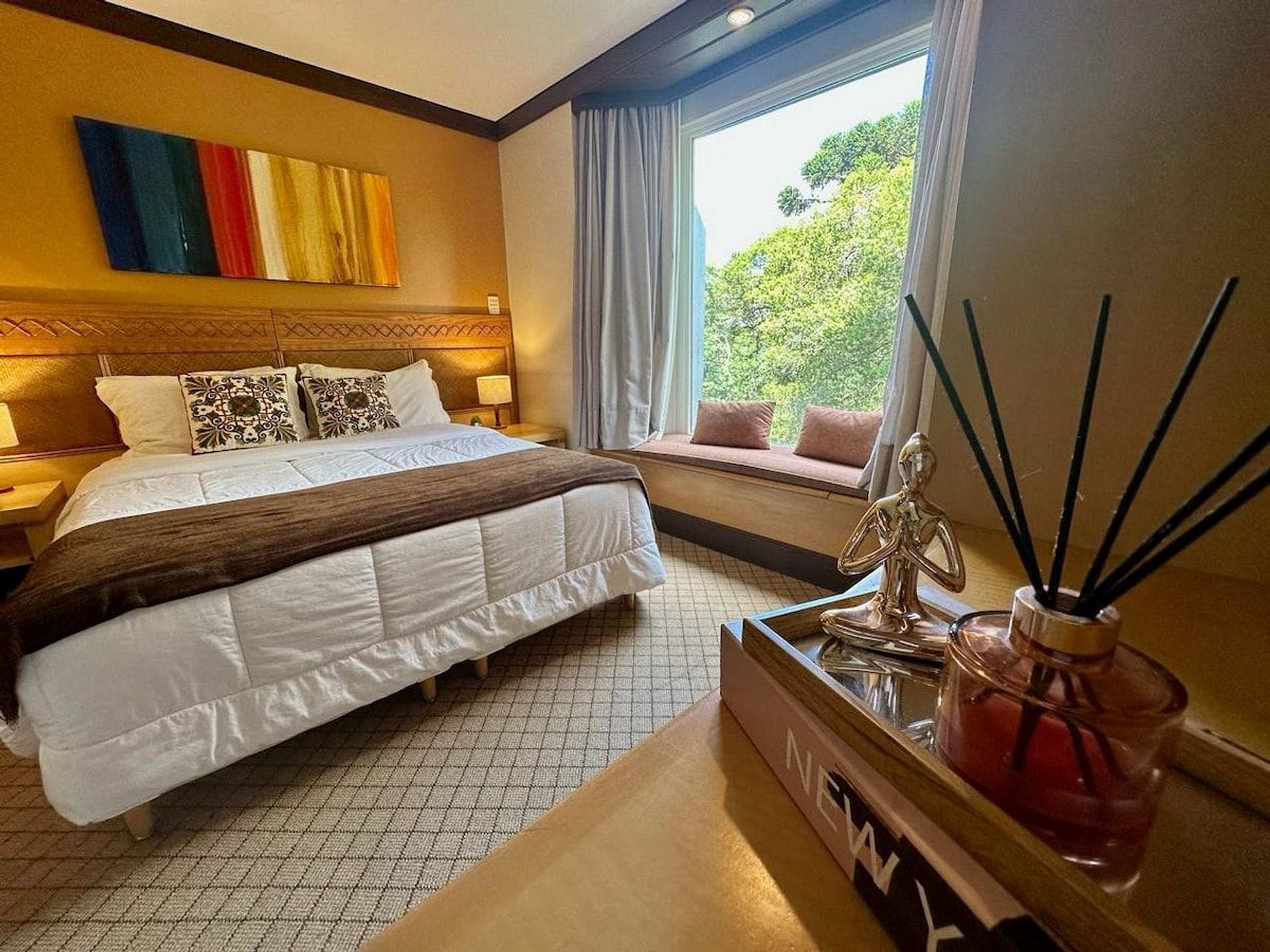 Lindo e Aconchegante Flat/Studio de Alto Padrão para até 04 pessoas, com quarto de casal, sala com dois ambientes e cozinha completa. Quarto e Sala com vistas para um lindo bosque. O banheiro possui duas cubas, aquecedor de toalhas e banheira de hidromassagem. Localizado em meio a magnífica paisagem da região serrana. Equipado com Elegância e Funcionalidade para que você possa desfrutar de uma inesquecível estadia.