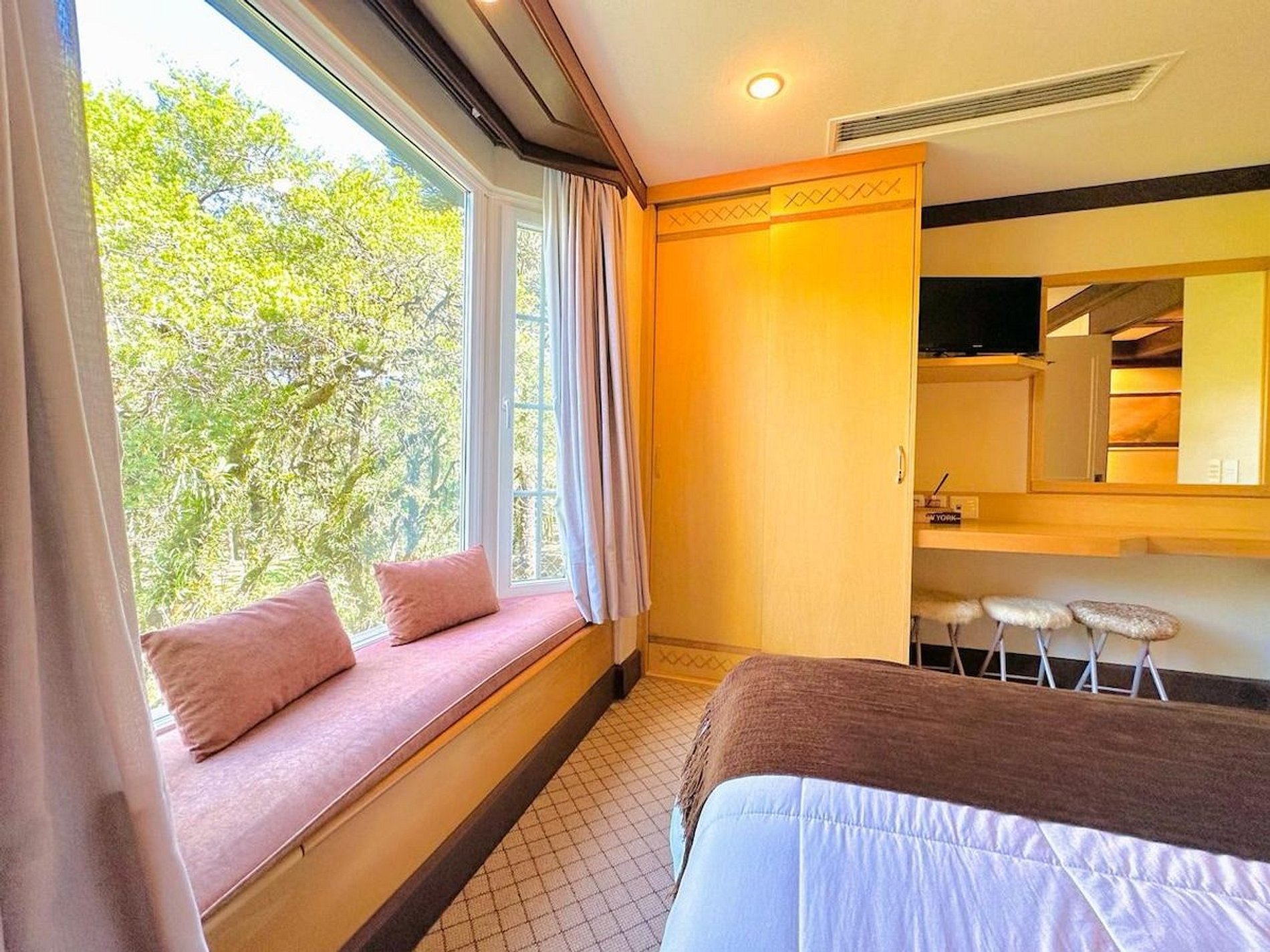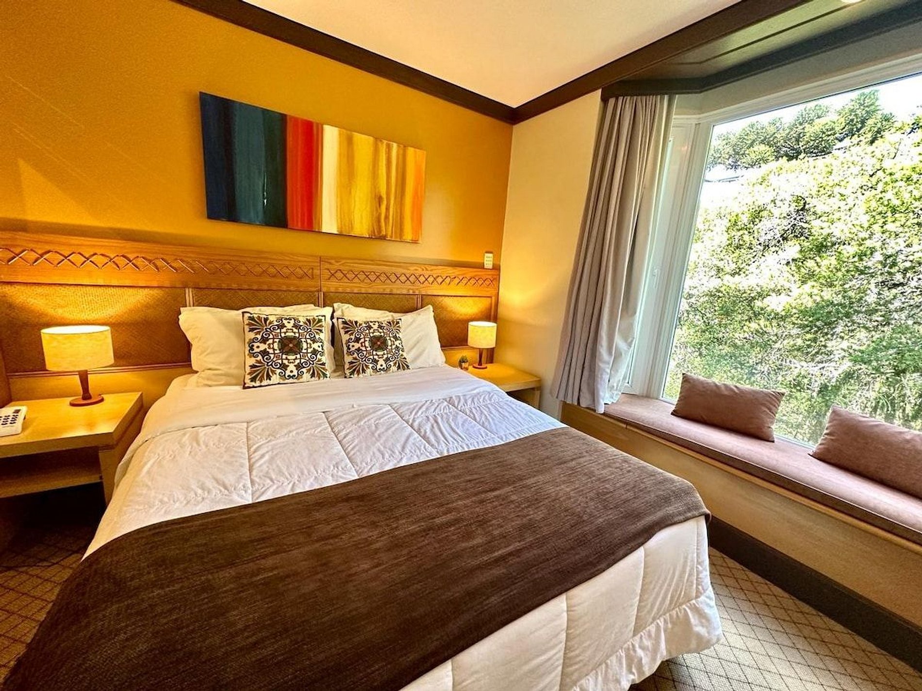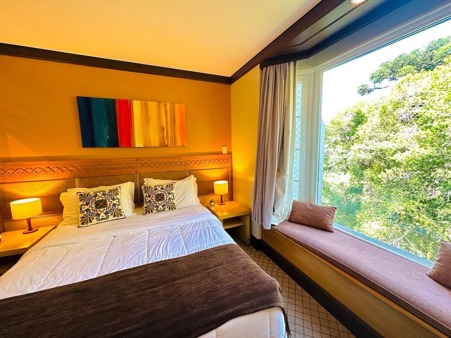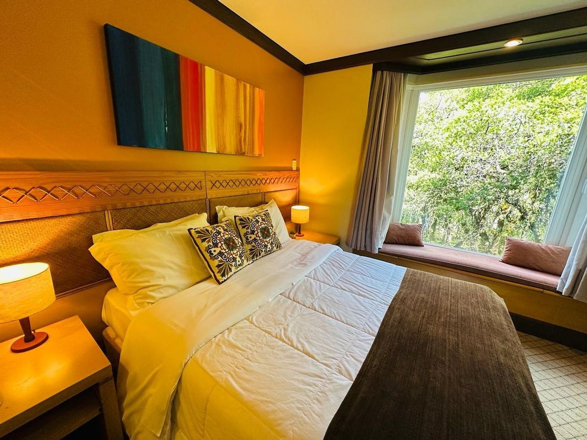 Lindo e Aconchegante Flat/Studio de Alto Padrão para até 04 pessoas, com quarto de casal, sala com dois ambientes e cozinha completa. Quarto e Sala com vistas para um lindo bosque. O banheiro possui duas cubas, aquecedor de toalhas e banheira de hidromassagem. Localizado em meio a magnífica paisagem da região serrana. Equipado com Elegância e Funcionalidade para que você possa desfrutar de uma inesquecível estadia.