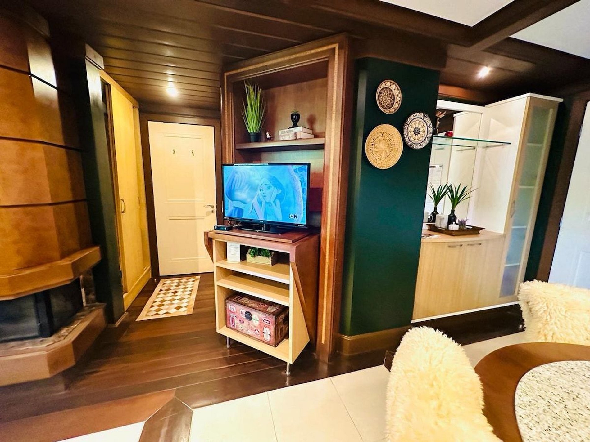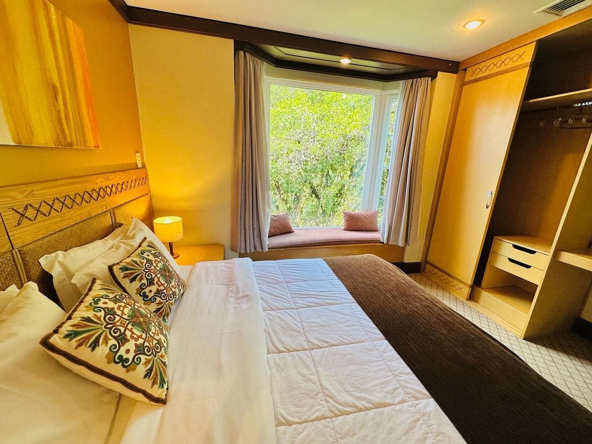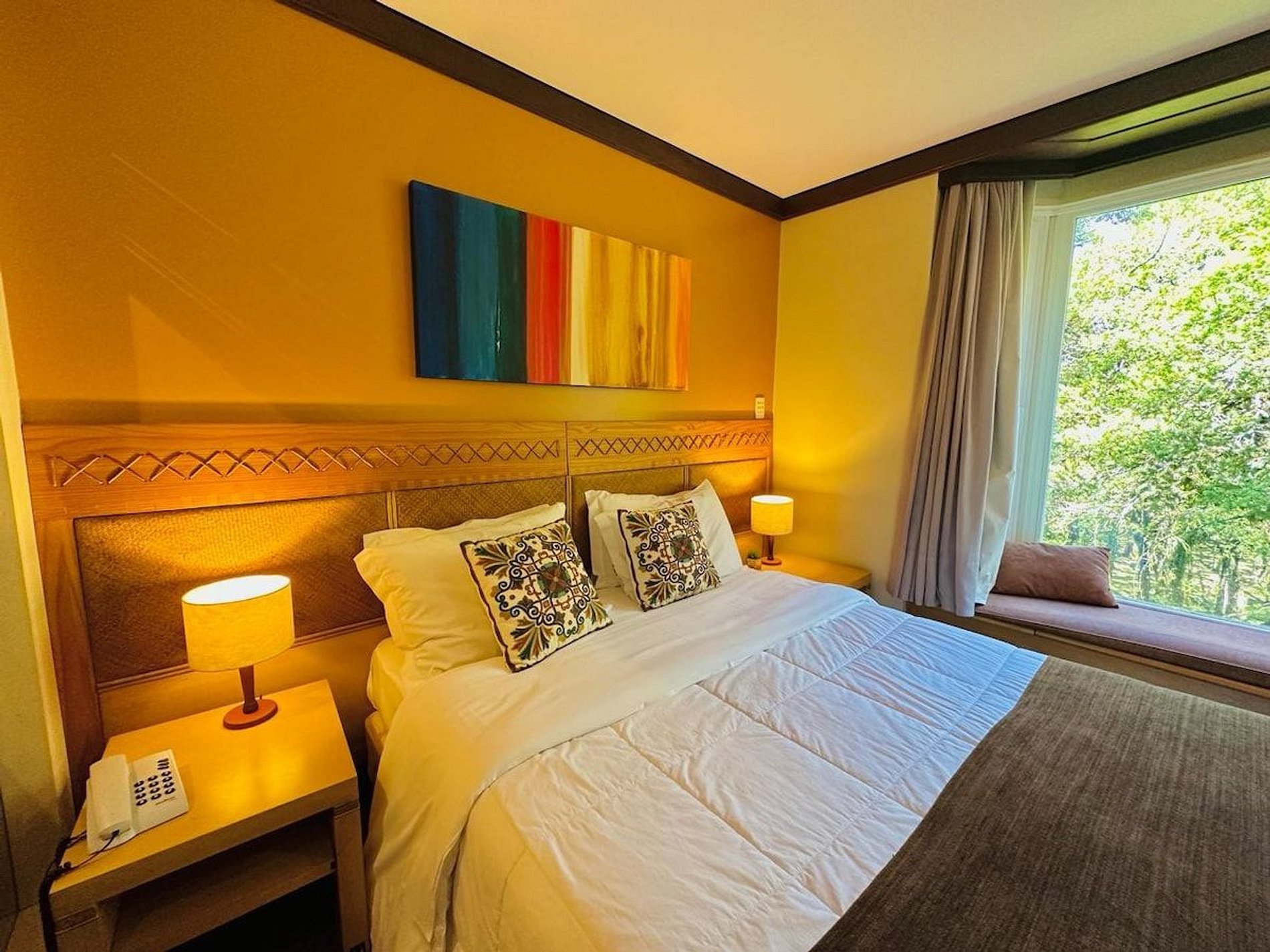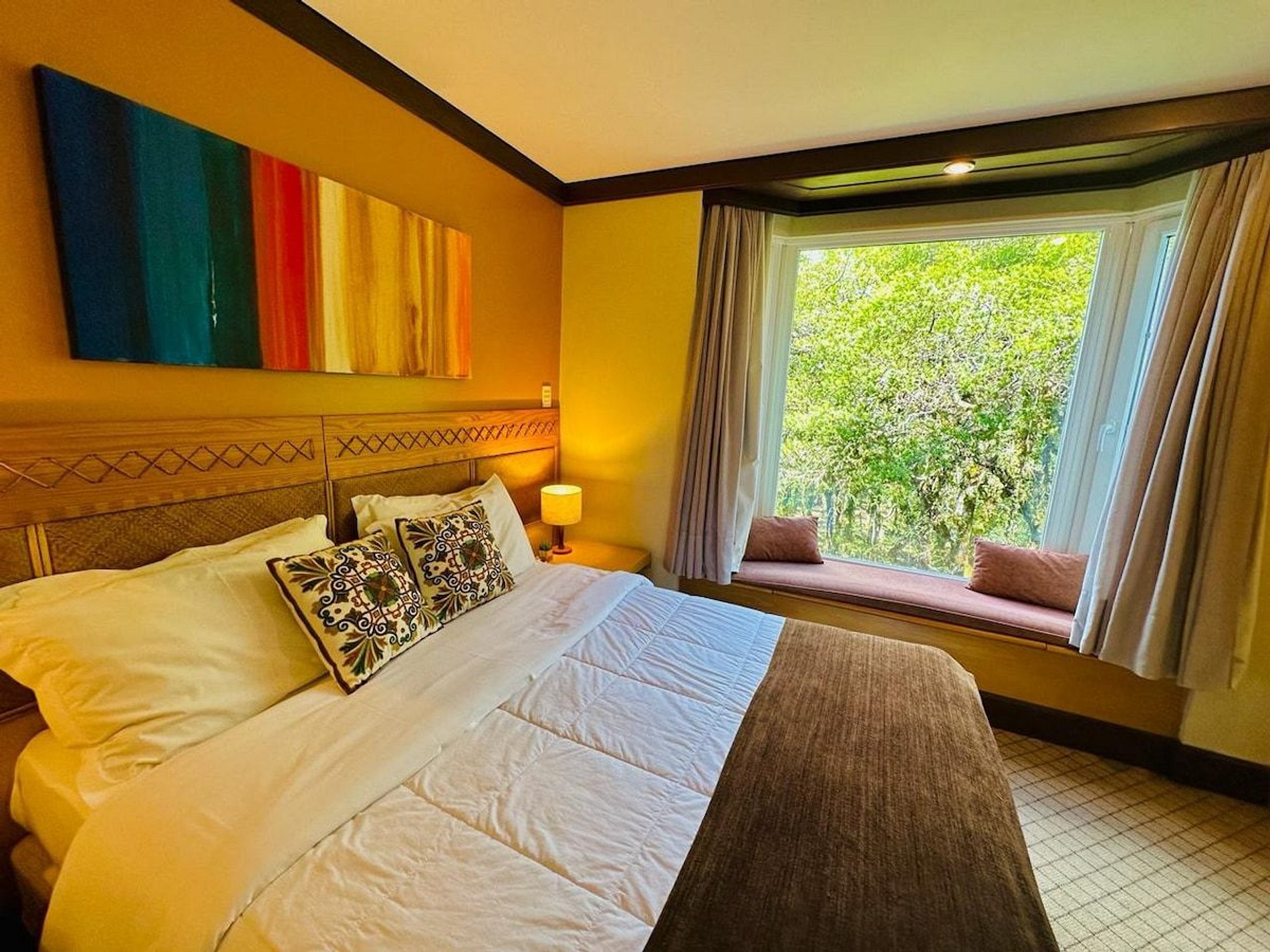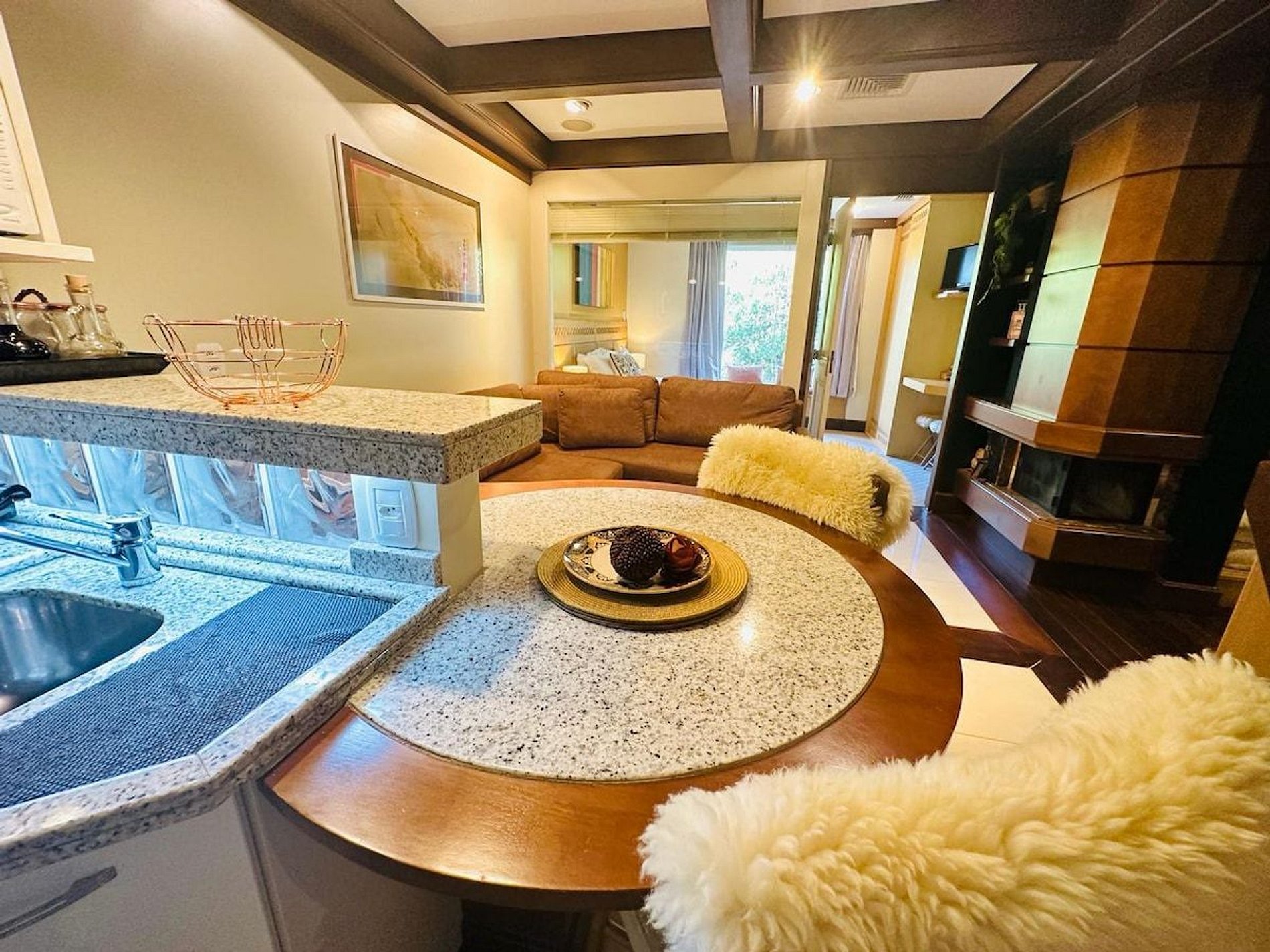Lindo e Aconchegante Flat/Studio de Alto Padrão para até 04 pessoas, com quarto de casal, sala com dois ambientes e cozinha completa. Quarto e Sala com vistas para um lindo bosque. O banheiro possui duas cubas, aquecedor de toalhas e banheira de hidromassagem. Localizado em meio a magnífica paisagem da região serrana. Equipado com Elegância e Funcionalidade para que você possa desfrutar de uma inesquecível estadia.