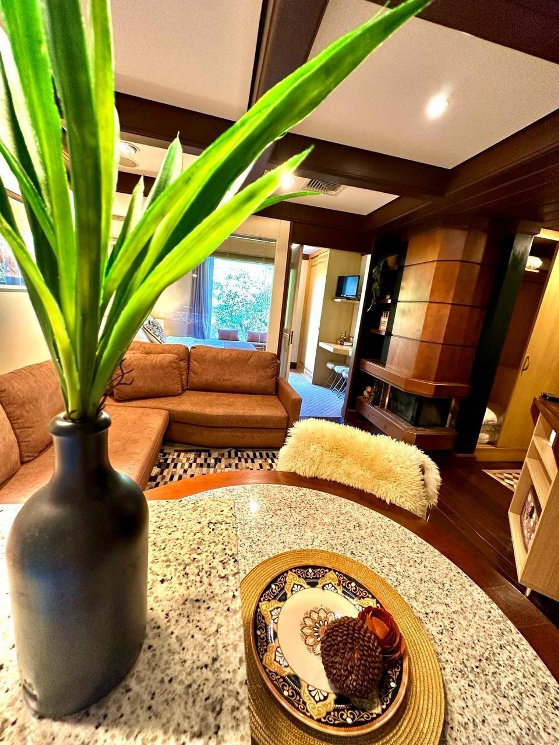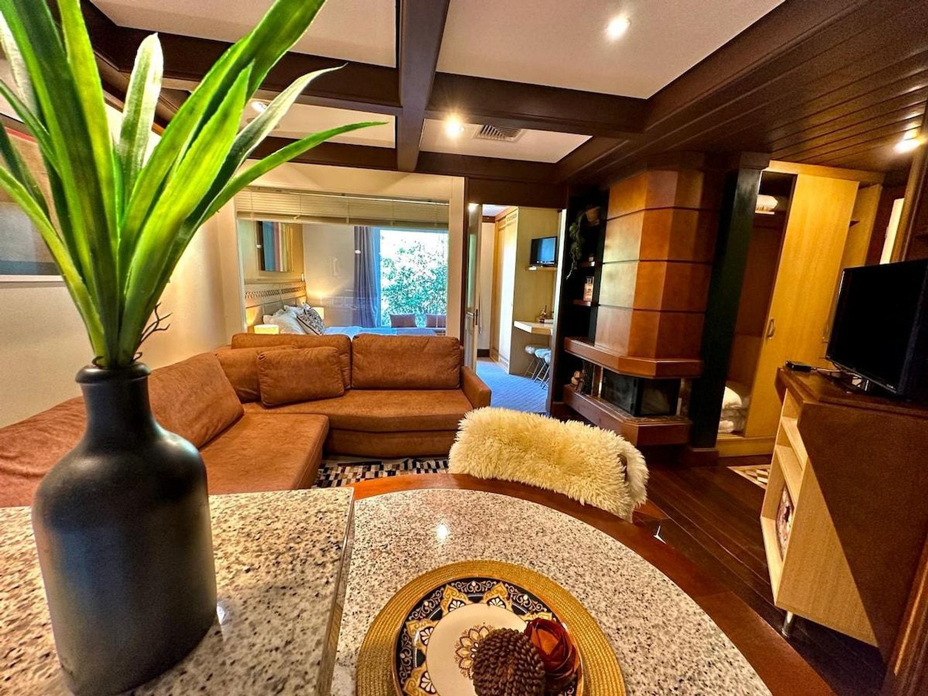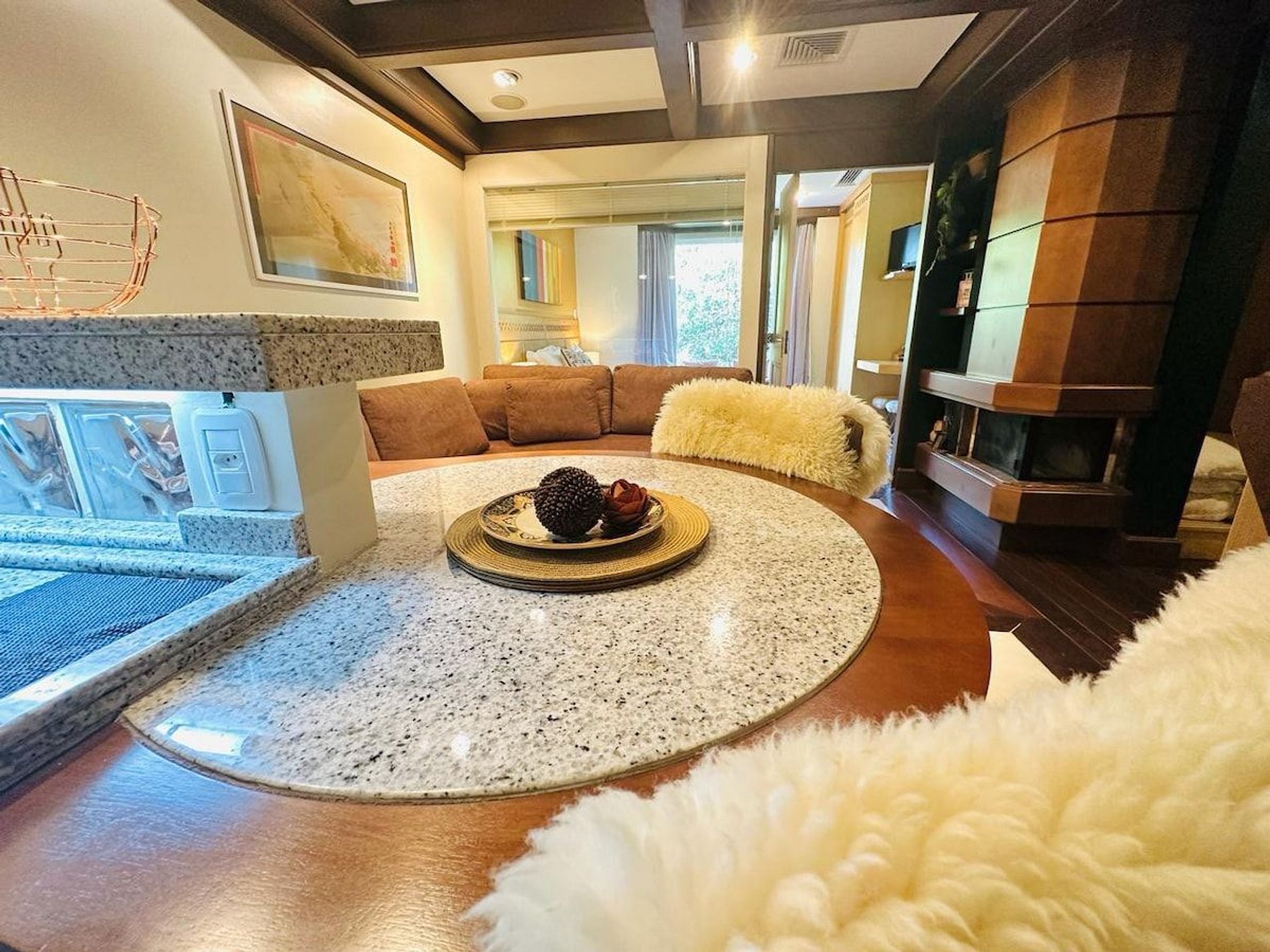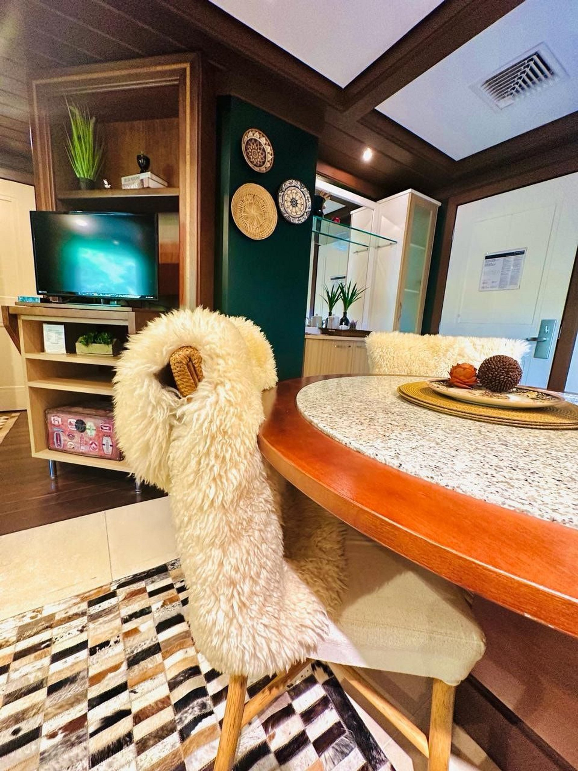 Lindo e Aconchegante Flat/Studio de Alto Padrão para até 04 pessoas, com quarto de casal, sala com dois ambientes e cozinha completa. Quarto e Sala com vistas para um lindo bosque. O banheiro possui duas cubas, aquecedor de toalhas e banheira de hidromassagem. Localizado em meio a magnífica paisagem da região serrana. Equipado com Elegância e Funcionalidade para que você possa desfrutar de uma inesquecível estadia.