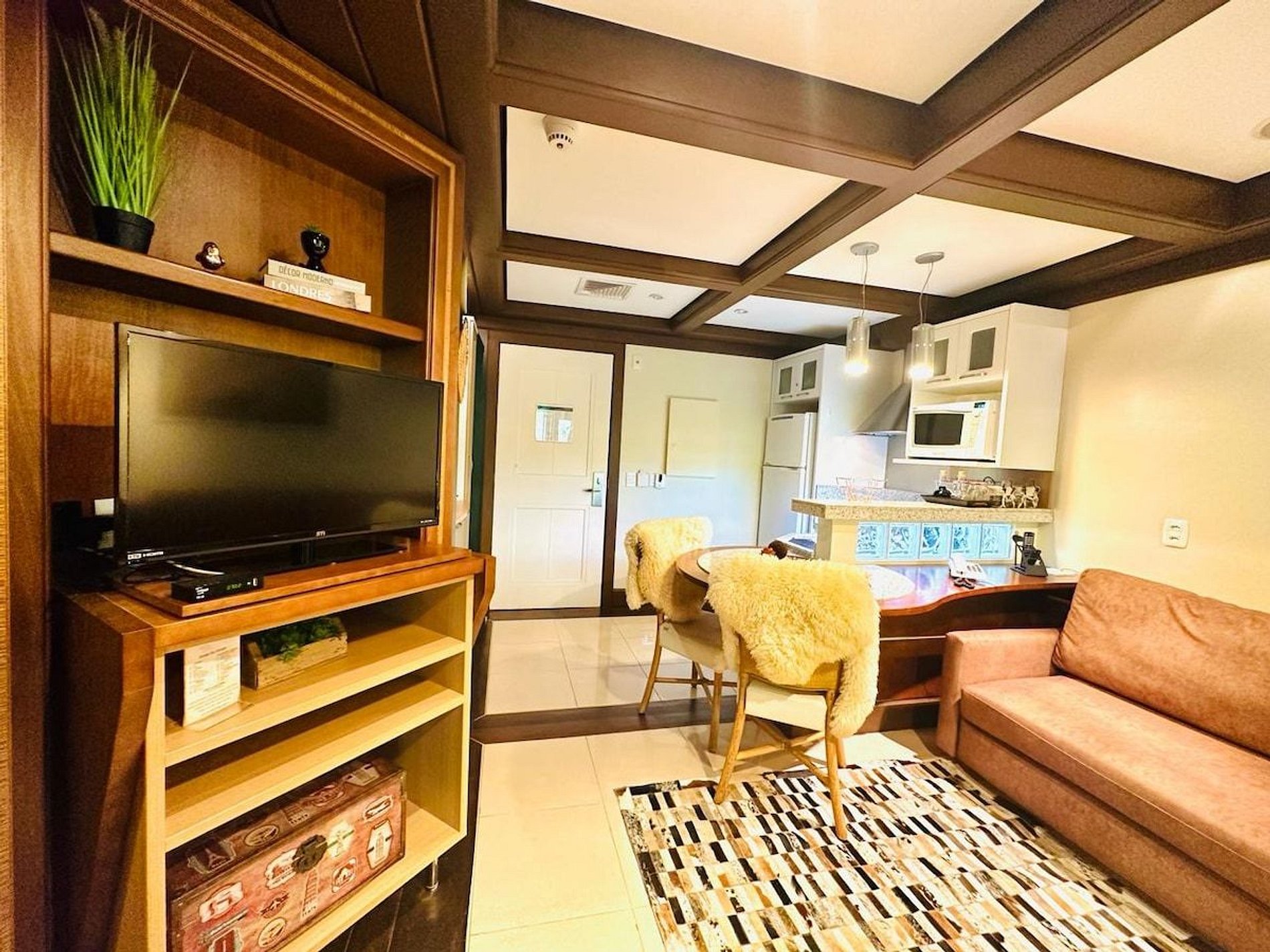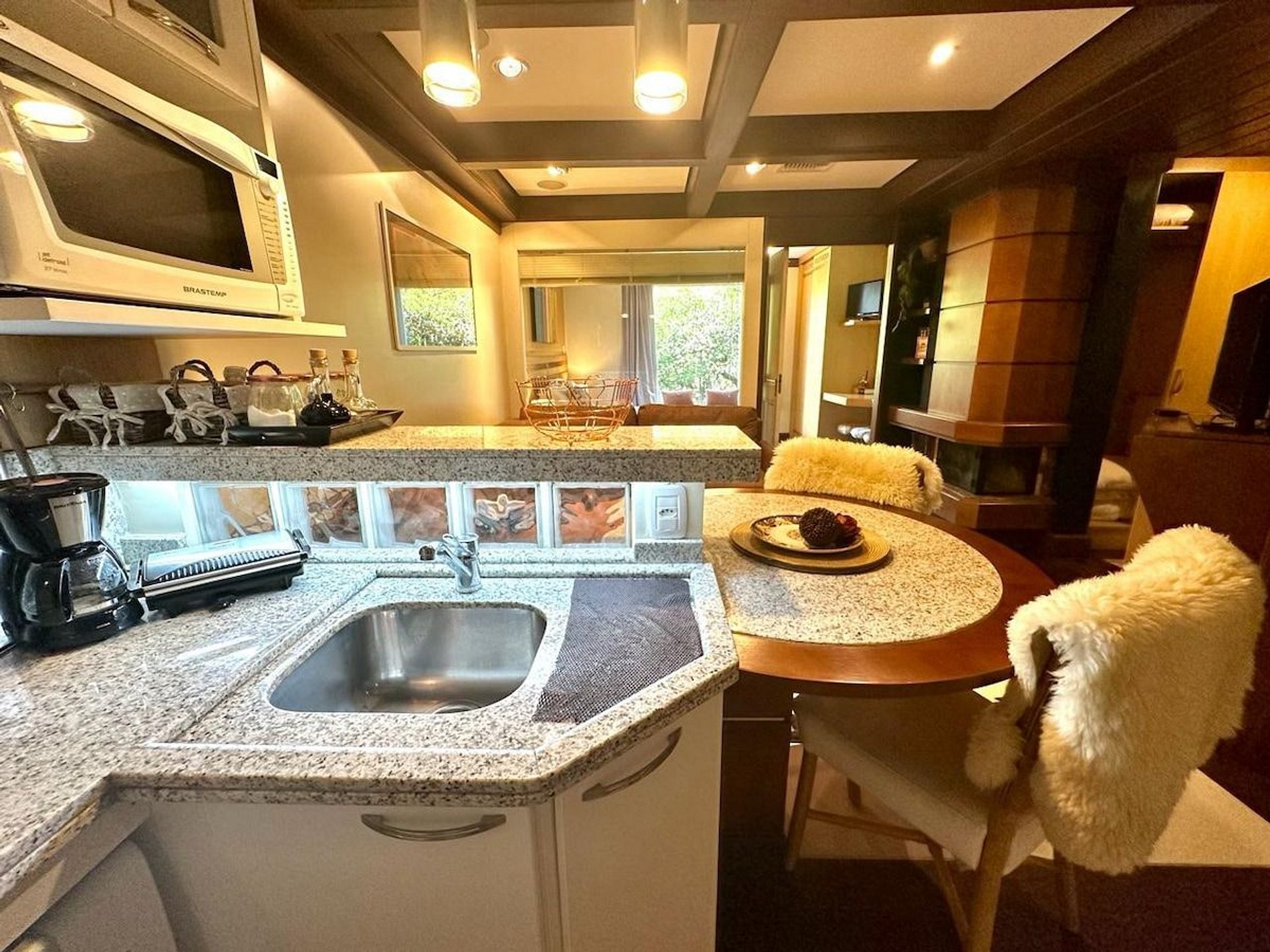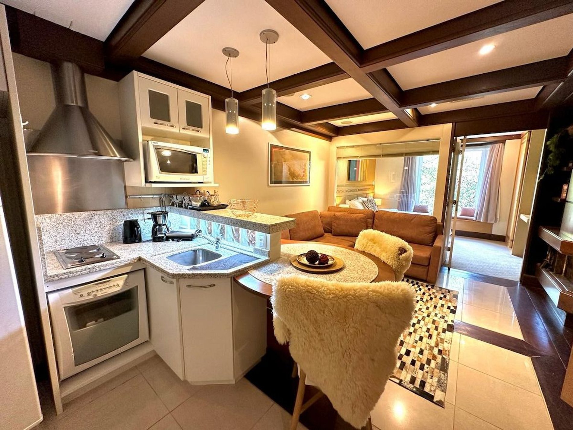 A acomodação possui serviço de hotel com limpeza diária, troca de toalhas, arrumação de cama e cozinha. A cozinha é muito bem equipada com todos os eletro domésticos necessários para cozinhar ou pedir delivery, além de todo o coberto de mesa. Temos cafeteira, chaleira elétrica, torradeira, micro-ondas e fogão. Disponibilizamos de forma gratuita chá e café para sua maior conveniência. Equipado com conforto e funcionalidade para que você possa desfrutar de uma inesquecível estadia.