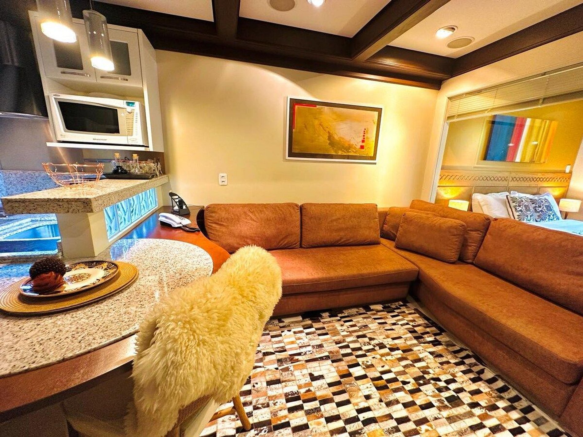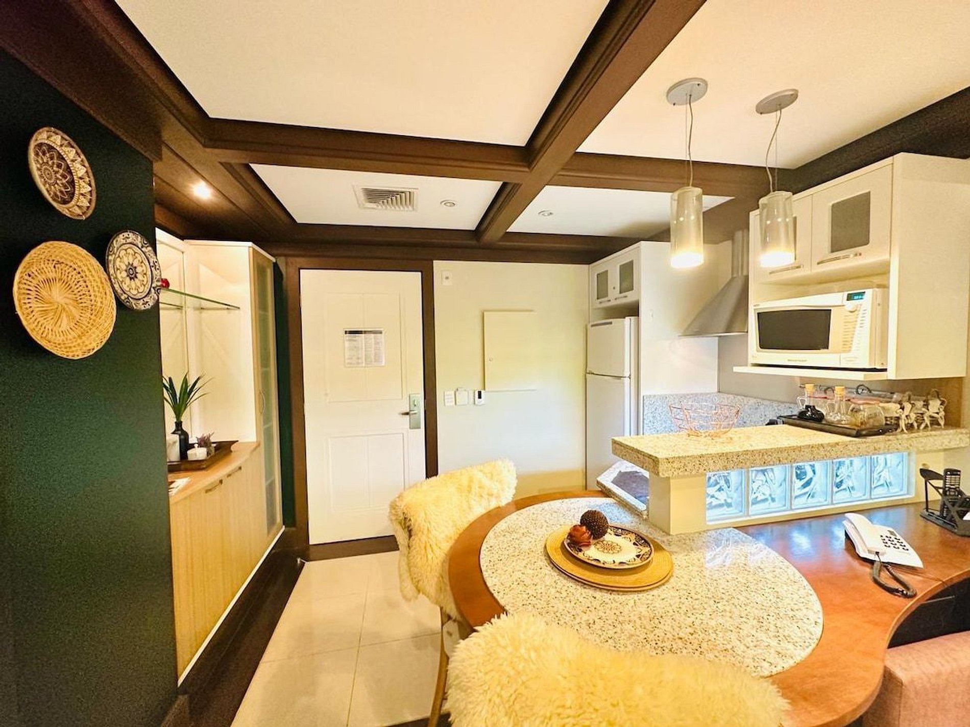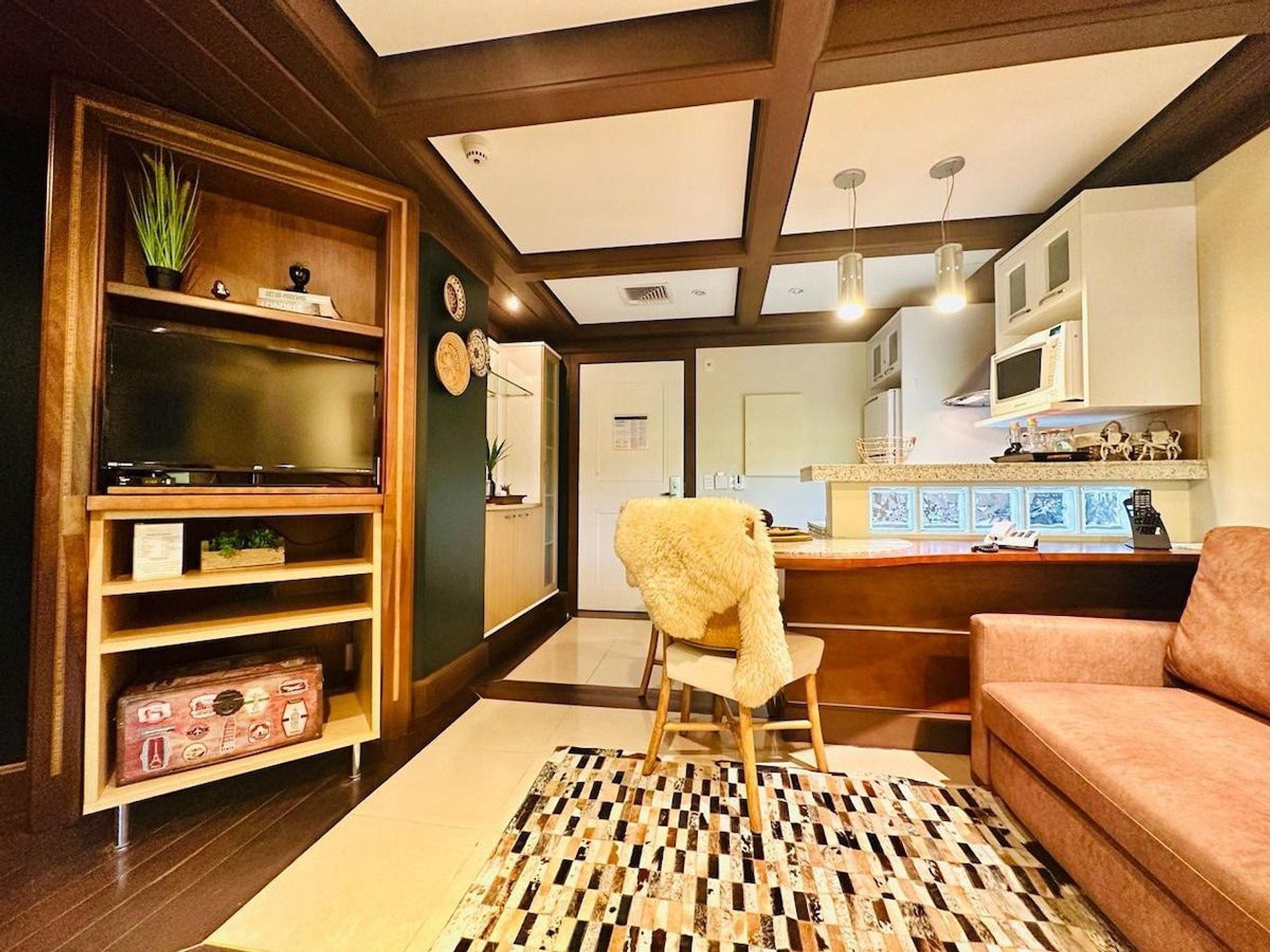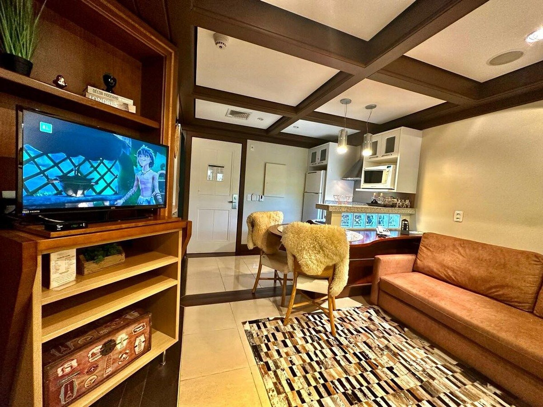 A acomodação possui serviço de hotel com limpeza diária, troca de toalhas, arrumação de cama e cozinha. A cozinha é muito bem equipada com todos os eletro domésticos necessários para cozinhar ou pedir delivery, além de todo o coberto de mesa. Temos cafeteira, chaleira elétrica, torradeira, micro-ondas e fogão. Disponibilizamos de forma gratuita chá e café para sua maior conveniência. Equipado com conforto e funcionalidade para que você possa desfrutar de uma inesquecível estadia.