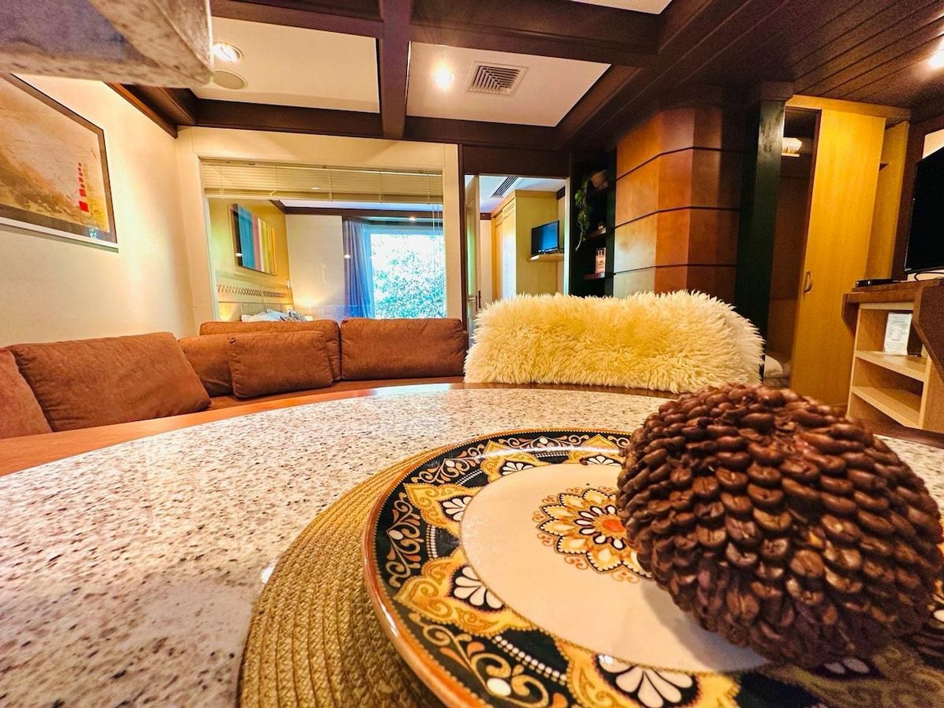 O Flat está localizado no Condomínio Laje de Pedra, conhecido por seu alto padrão. Estar aqui já é uma atração. O local possui beleza natural exuberante, dois grandes lagos para passear, curtir com a família e fazer um gostoso picnic (disponibilizamos de cesta). Com certeza sua família vai amar. Além disso, o condomínio possui academia ao ar livre e playground, quadras de tênis e campo de futebol.