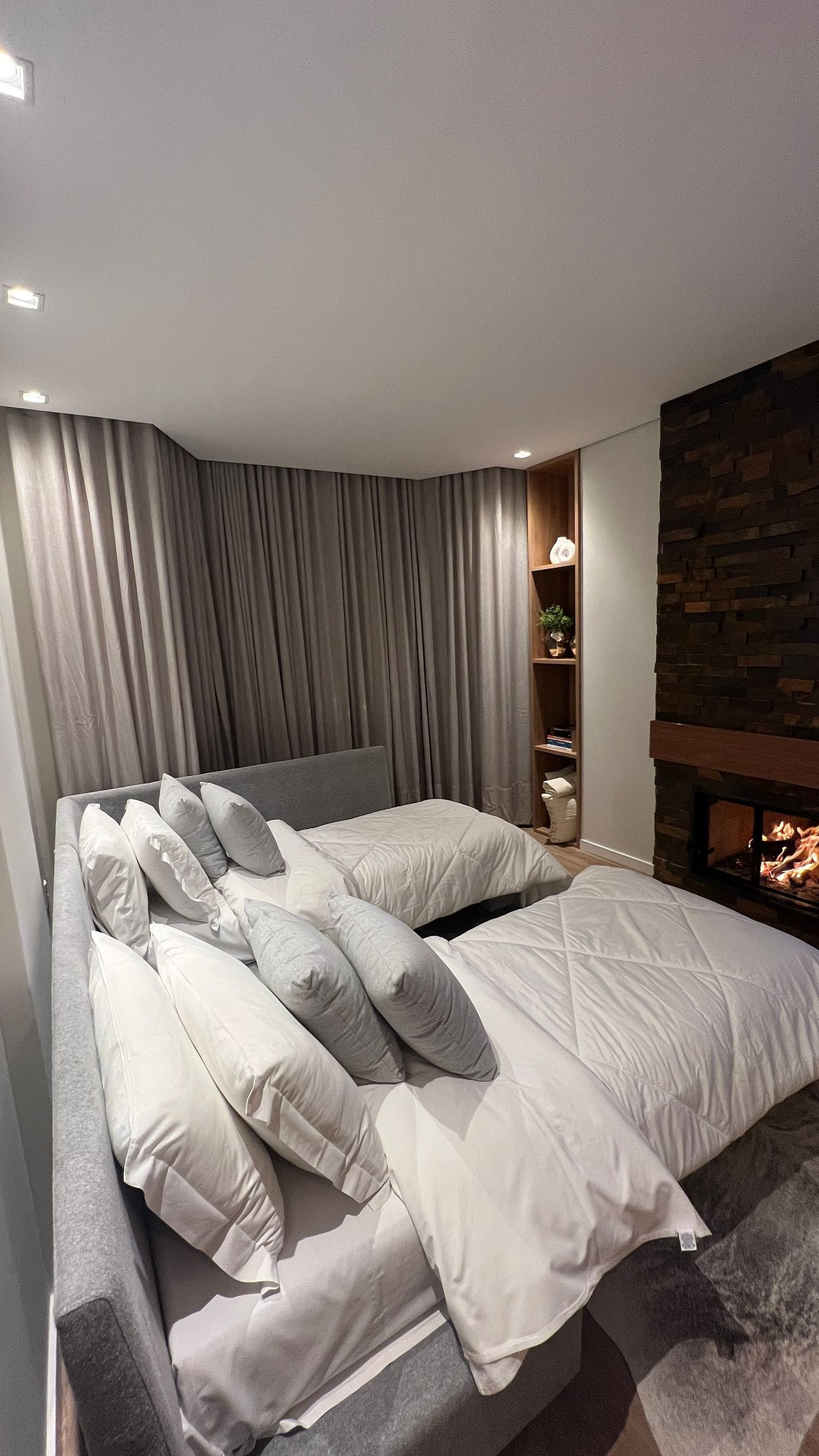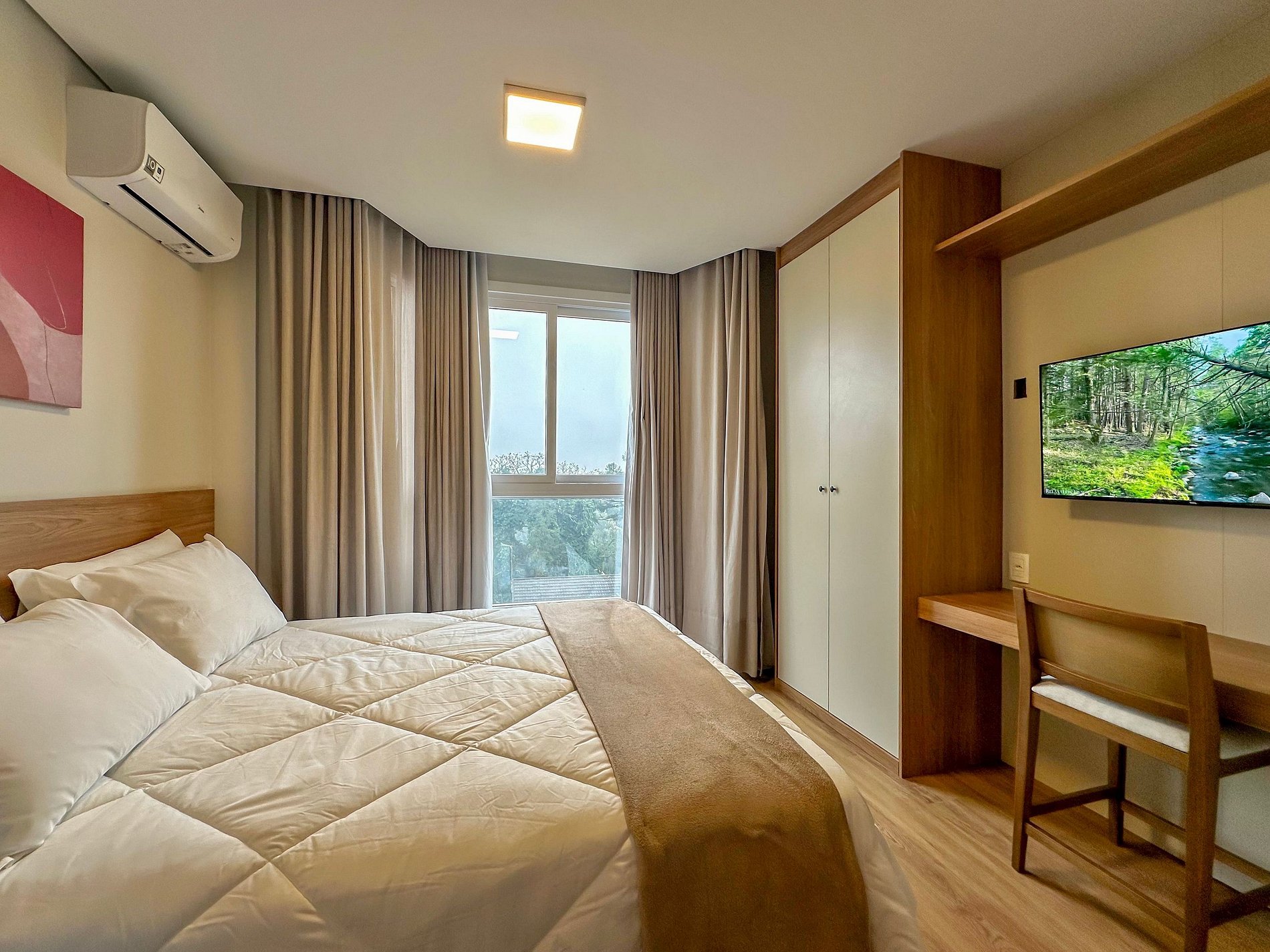 Divirta-se com toda a família neste lugar cheio de etudio 503 no serra class – luxo e conforto na serra gaúcha bem-vindo ao studio 505, localizado no edifício serra class, na encantadora cidade de canela, na serra gaúcha. recém-inaugurado, este studio é o refúgio perfeito para quem busca conforto, elegância e comodidade em um dos pontos mais altos e belos da cidade. nosso studio acomoda confortavelmente até 4 pessoas, oferecendo um ambiente acolhedor e sofisticado.stilo. que oferecemos no studio 505: - acomodações para até 4 pessoas: espaço ideal para famílias ou grupos de amigos, com camas confortáveis e roupa de cama de alta qualidade. - banheira de hidromassagem: relaxe e descanse em nossa banheira, perfeita para um banho revigorante após um dia de passeios. - lareira: fornecemos um kit de lenha diariamente; - cozinha completa: totalmente equipada com fogão, geladeira, micro-ondas, cafeteira, e todos os utensílios necessários para preparar suas refeições favoritas. - sala de estar acolhedora: ambiente aconchegante com tv e wi-fi, ideal para momentos de lazer e descanso. - área de jantar: espaço confortável para desfrutar suas refeições em família ou com amigos. comodidades do prédio: - piscina:*refresque-se e relaxe na piscina do edifício. - sauna: desfrute de momentos de tranquilidade e bem-estar na sauna. - academia: mantenha sua rotina de exercícios na academia moderna e bem equipada. - brinquedoteca: espaço dedicado para as crianças se divertirem com segurança. - mini mercado no térreo: conveniência ao seu alcance, com itens essenciais e mais. - lareira sim