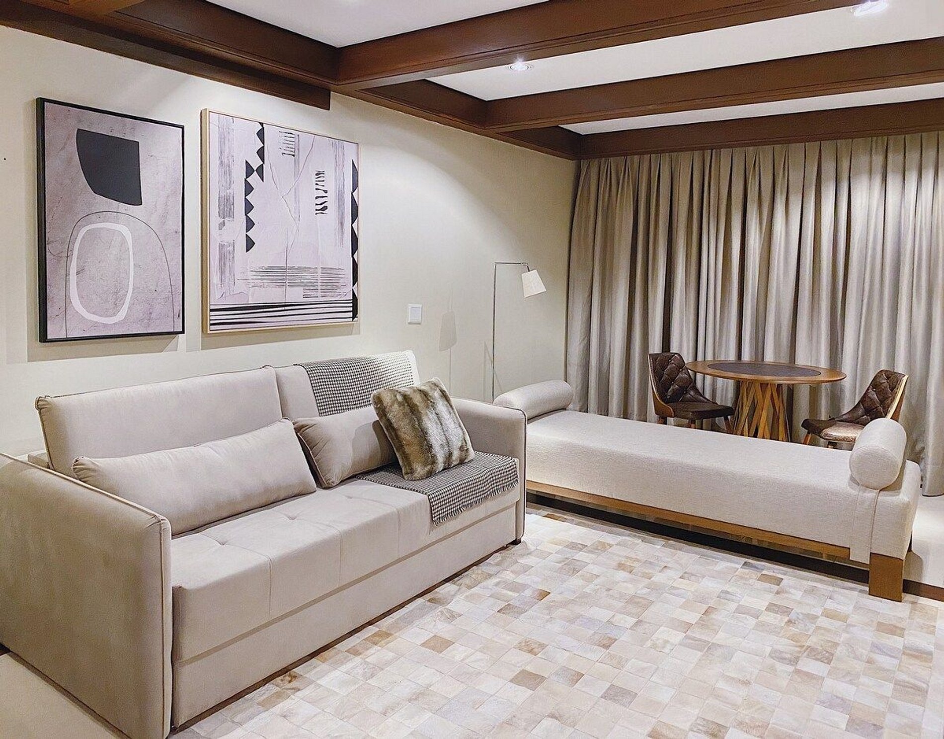 Área de estar com sofá/cadeira