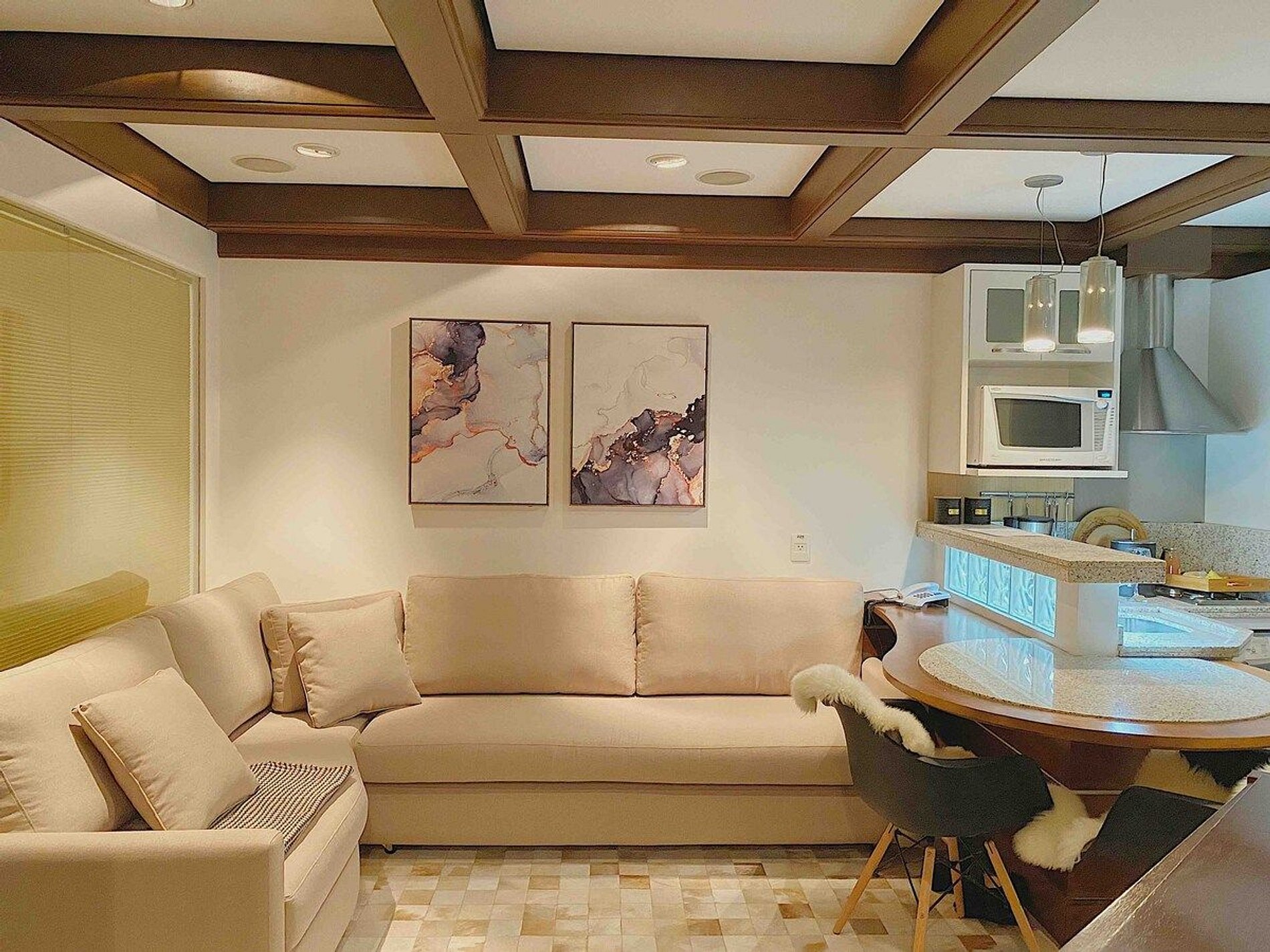 A acomodação possui serviço de hotel com limpeza diária, troca de toalhas, arrumação de cama e cozinha. A cozinha é muito bem equipada com todos os eletro domésticos necessários para cozinhar ou pedir delivery, além de todo o coberto de mesa. Temos chaleira elétrica, torradeira, micro-ondas e fogão. Equipado com conforto e funcionalidade para que você possa desfrutar de uma inesquecível estadia.